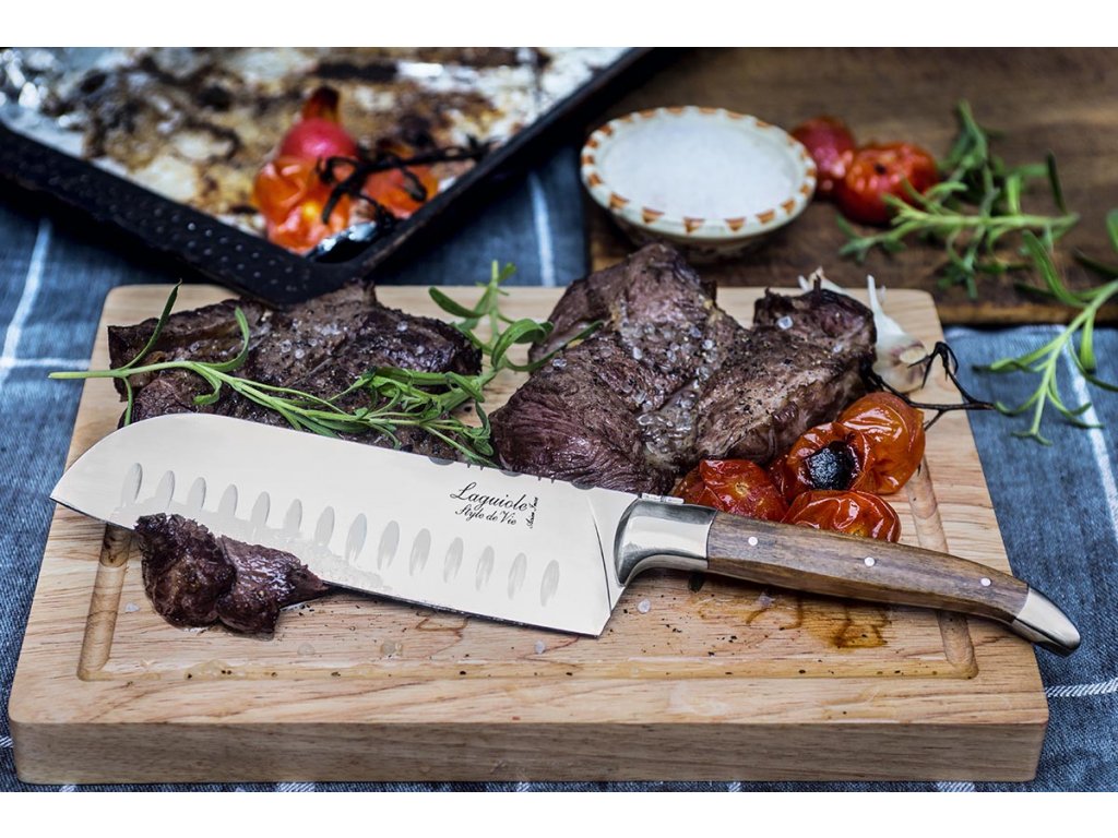 LAGUIOLE Luxury - nůž Santoku, rukojeť olivové dřevo s dřevěným prkénkem