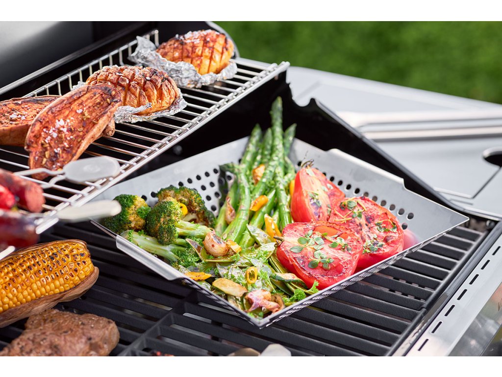 Na co je grilovací mísa nejlepší? No přece na grilování nejrůznější zeleniny. Ať už na grilování velkých kusů zeleniny jako je paprika nebo chřest nebo na drobnější zeleninu jako žampiony nebo různé směsi zelenin. Mísa je perforovaná a má dvě madla pro pohodlnou a bezpečnou manipulaci s grilovacími rukavicemi. |