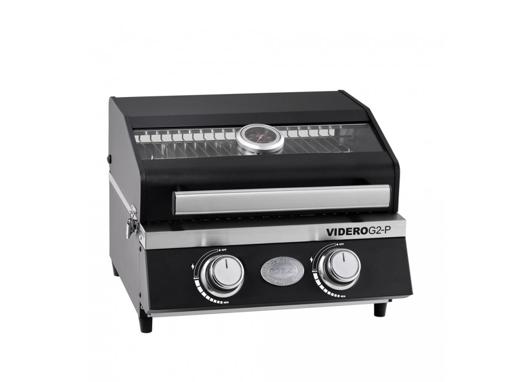 VIDERO G2-P Vario+ je praktický, velice výkonný přenosný plynový gril se 2 hořáky. Tento gril je určen pro 2-4 osoby, které chcete pohostit na malém prostoru či na výletě. Gril lze snadno a bezpečně přepravovat.